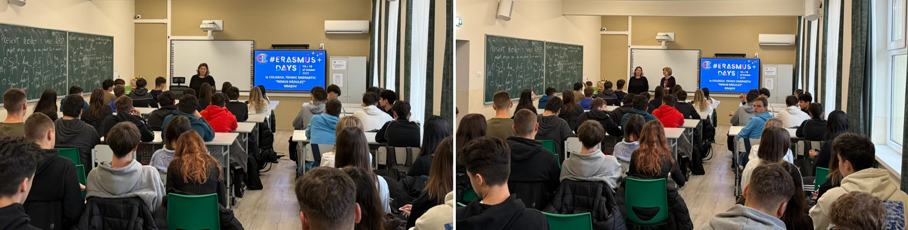 Sub tema „Experiența noastră Erasmus”, elevii din clasele a XI-a și a XII-a, participanți în mobilitățile Erasmus+, au împărtășit colegilor lor din clasele a X-a și a XI-a momente, impresii și lecții învățate în cadrul stagiilor de pregătire profesională desfășurate în Ungaria, Cipru și Turcia, prin proiectele de mobilitate 2023-1-RO01-KA121-VET-000125770 și 2024-1-RO01-KA121-VET-000202577.