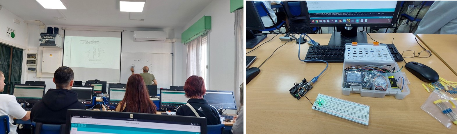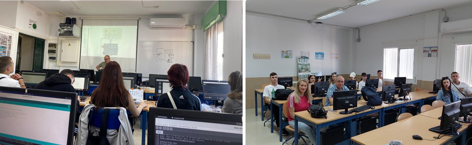 Elevii au desfășurat activități profesionale în cadrul școlii legate de conectarea panourilor fotovoltaice, verificarea funcționării acestora precum și aplicații în domeniul automatizării pentru semaforizare și iluminat cu led-uri, utilizând kit-uri ARDUINO.