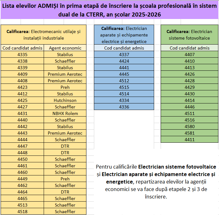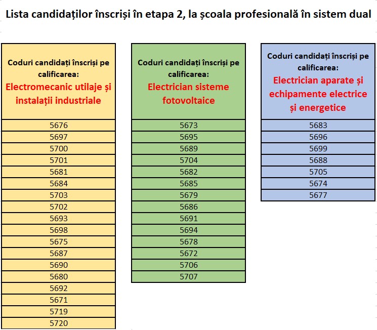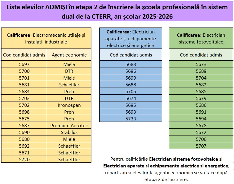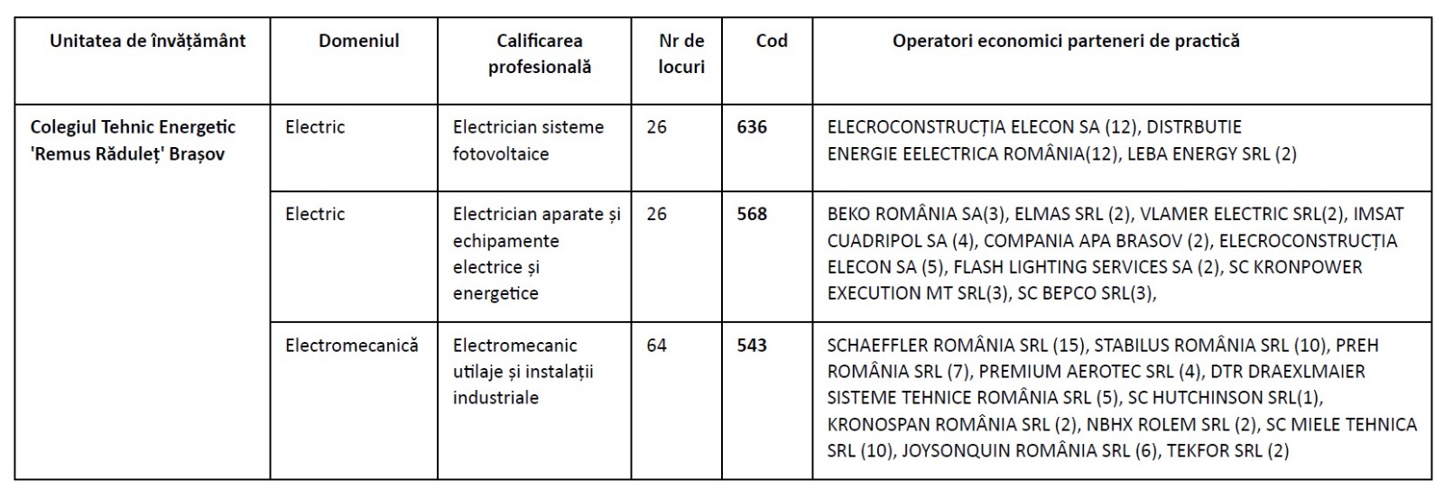 - Numărul de locuri rămase libere după etapa I: - Electricieni - 7 locuri - Electromecanici - 16 locuri