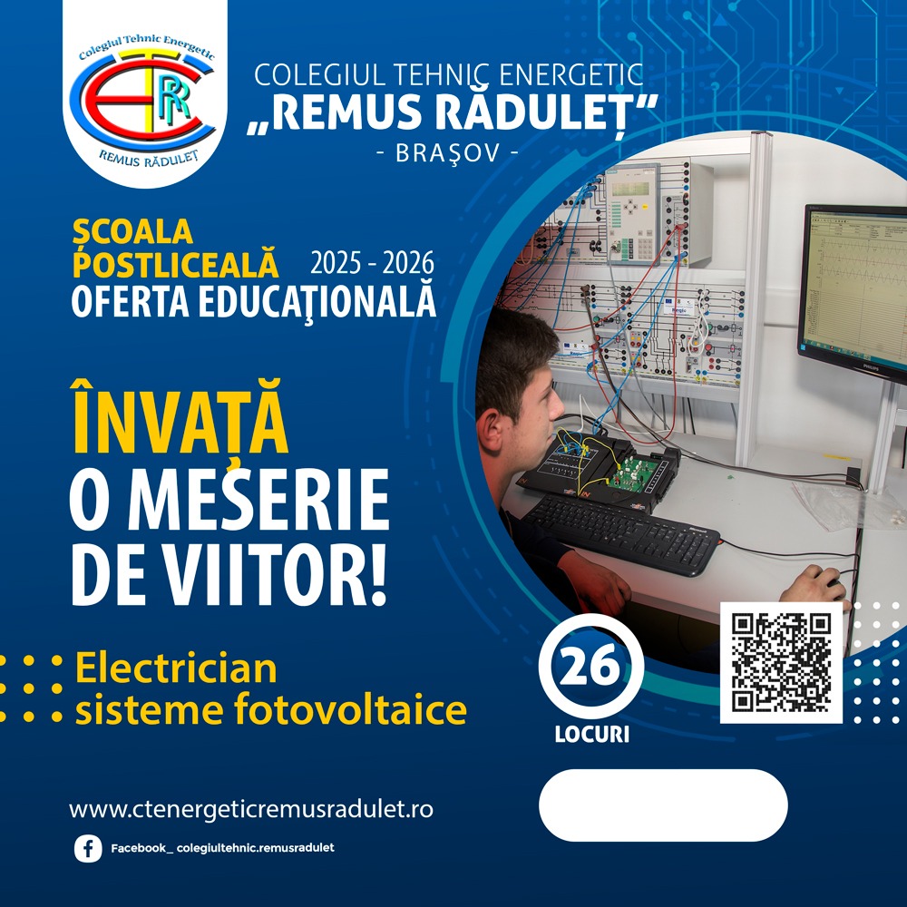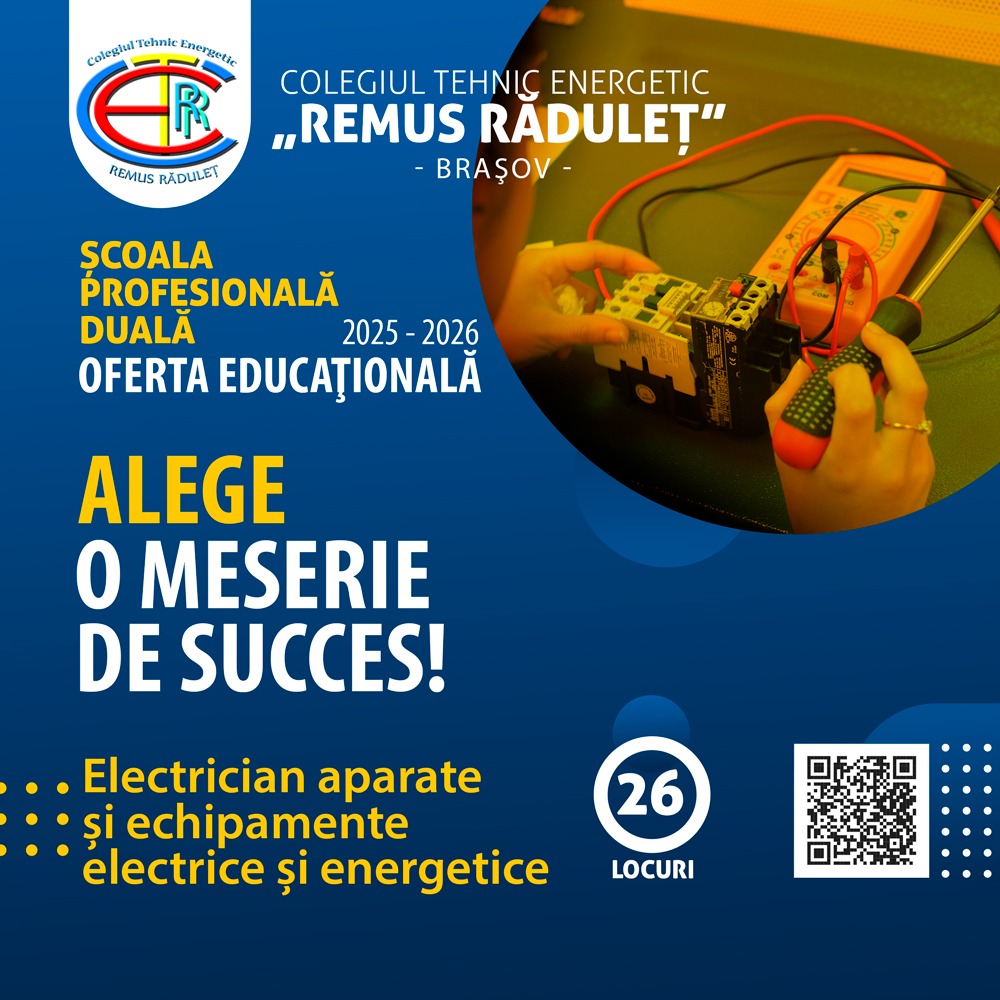 - Electrician aparate și echipamente electrice și energetice - 25 locuri, 1 clasa